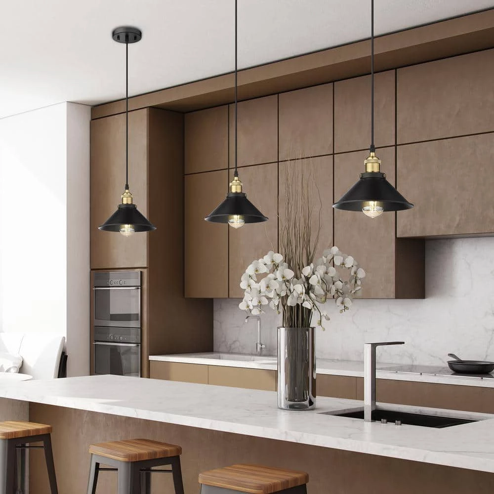 Pairing beautifully with an exposed brick, industrial-inspired aesthetic, or standing out and making a bold statement in a minimalist decor space. The Shella Pendant Ceiling light presents itself as a real lightbulb moment to those looking to renovate. The Shella houses a semi-obscured exposed bulb in a shallow shade, with its all-black finishes offset to beautiful effect by the antique-look brushed gold socket.