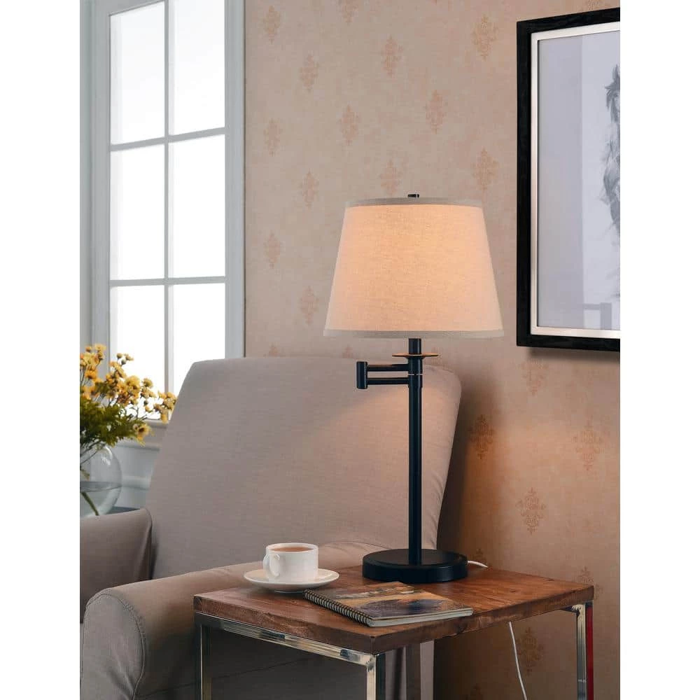 - Casual swing arm table lamp with oil rubbed bronze finish