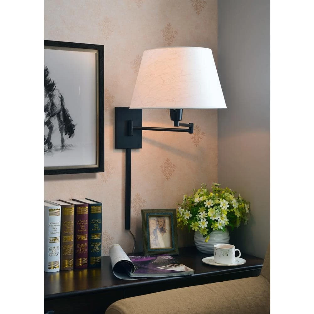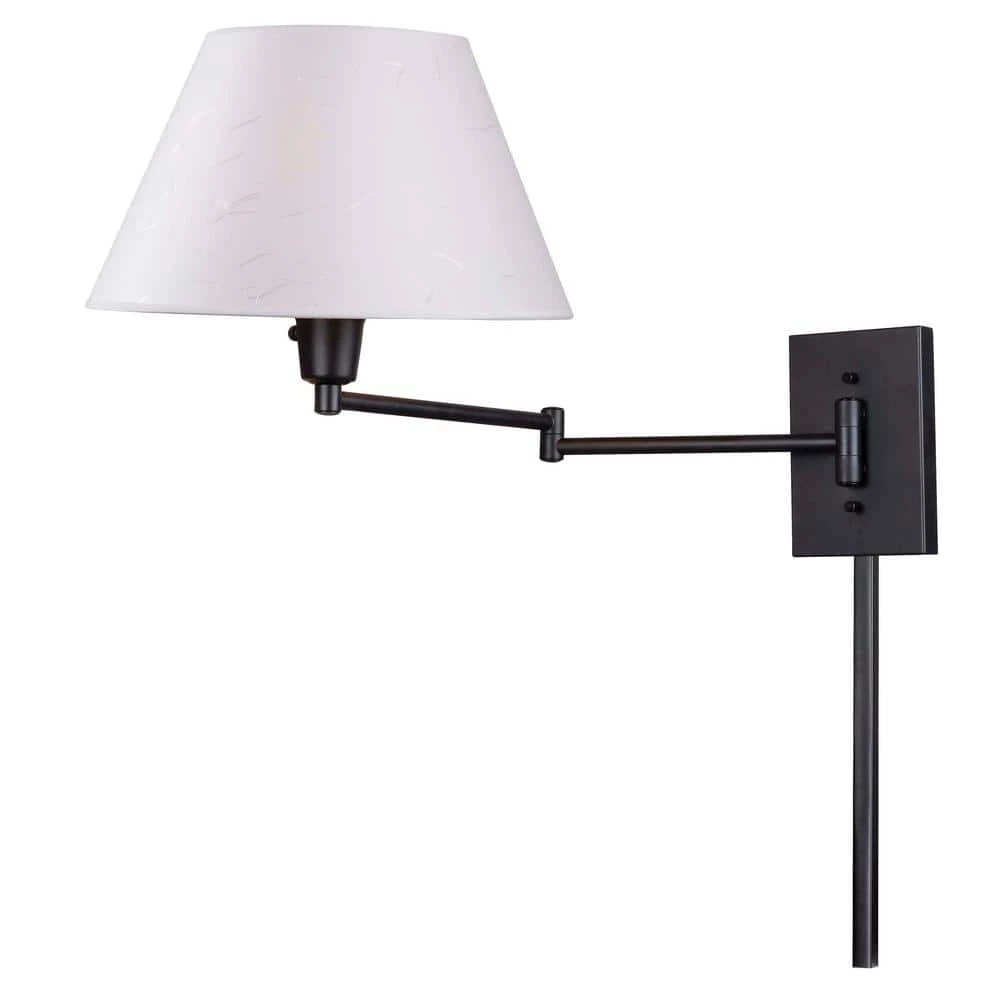 Functional and stylish, the Simplicity wall swing arm lamp from Kenroy Home makes it easy to direct light just where you need it, when you need it. Featuring an extendable reach of just over 2-feet, this glamourous styled swing arm lamp is ideal for bedside reading or home office studying. The multi-swivel design gives you two pivot points, allowing for precision control over what surface area you wish to illuminate. Part of our Elite Shade Series, the premium 13-inch diameter white parchment shade creates an inviting and soothing glow. Not only pleasing to look at, this wall swing arm lamp offers a convenient convertible design that can be plugged into the wall or installed as a hardwired fixture. Cord covers are included to discreetly hide the power cord, giving you a professional and finished look.