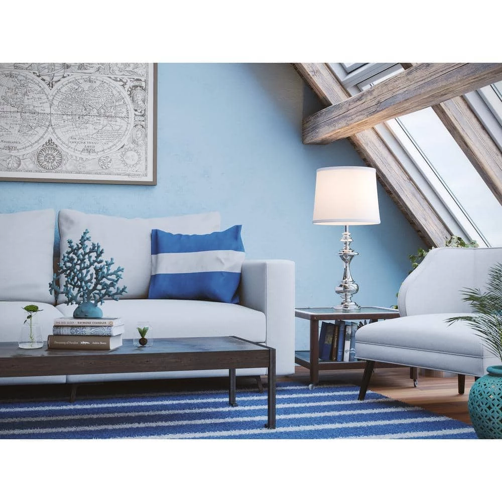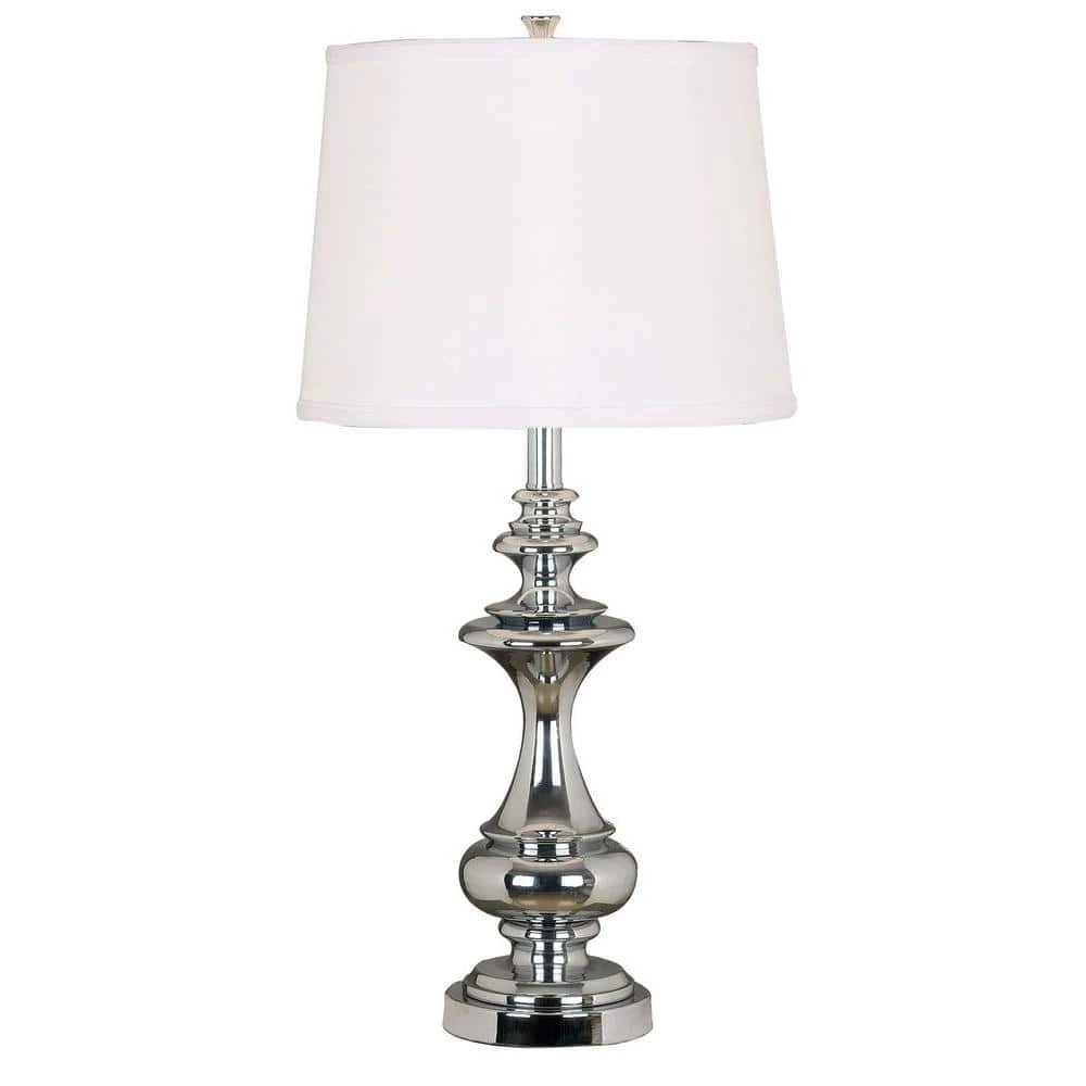 - A MODERN CLASSIC: the classic urn shaped lamp body is given a modern and contemporary upgrade courtesy of a shimmering chrome finish; the modern casual appeal is extended with the addition of a 14 inch diameter white tapered drum shade