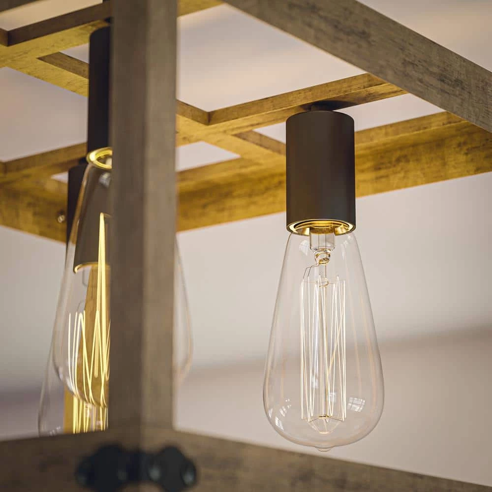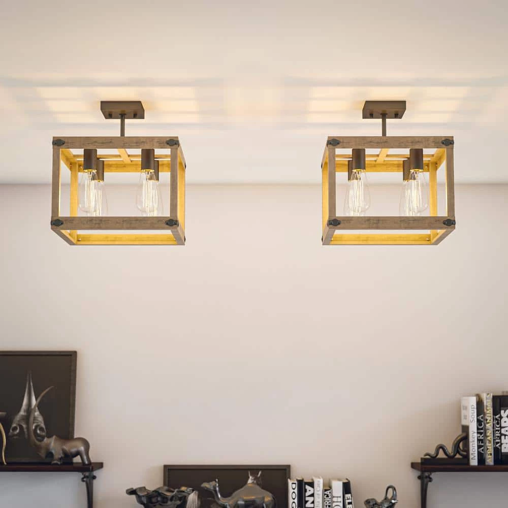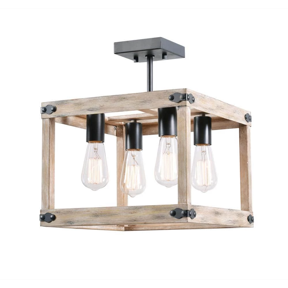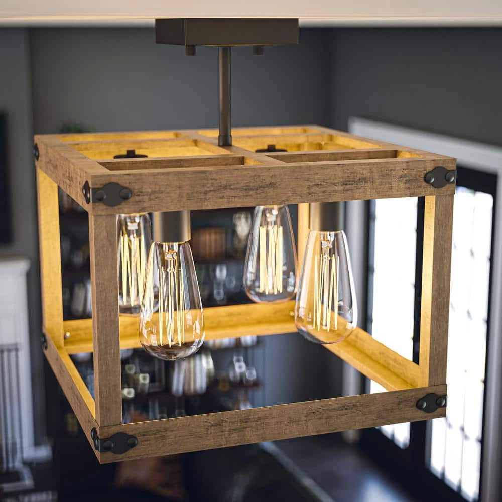 - MODERN FARMHOUSE CHARM: Modern clean lines and a distressed woodgrain finish add plenty of casual rustic charm to this 4 light semi flush mount. Comprised of an open wood frame and four exposed Edison style bulbs, this light fills your kitchen and dining room with plenty of atmospheric, warm light while accenting your modern farmhouse home decor.