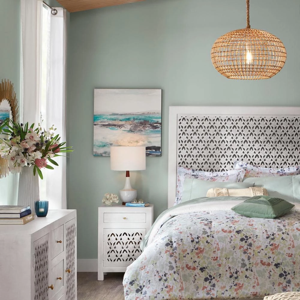 - Crisp white cotton drum shade creates a soft, room-filling glow