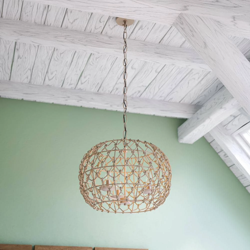 Don’t get tied up in typical lighting – show your coastal style with the natural tied rope details of the 3 Light Pendant. Easy to install, this pendant is high vaulted ceiling compatible, so you can showcase your white weathered dining room table or your fun bohemian entryway. The 3 candelabra bulbs create a soft, warm glow perfect for romantic dinners for two in the comfort of your home.