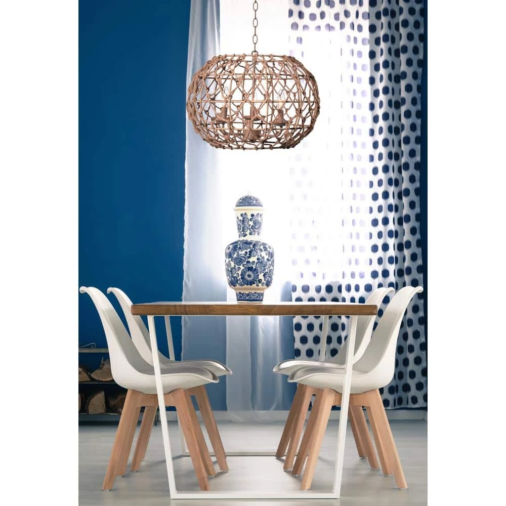 - Natural tied rope outer shade and candelabra bulbs for brightness
