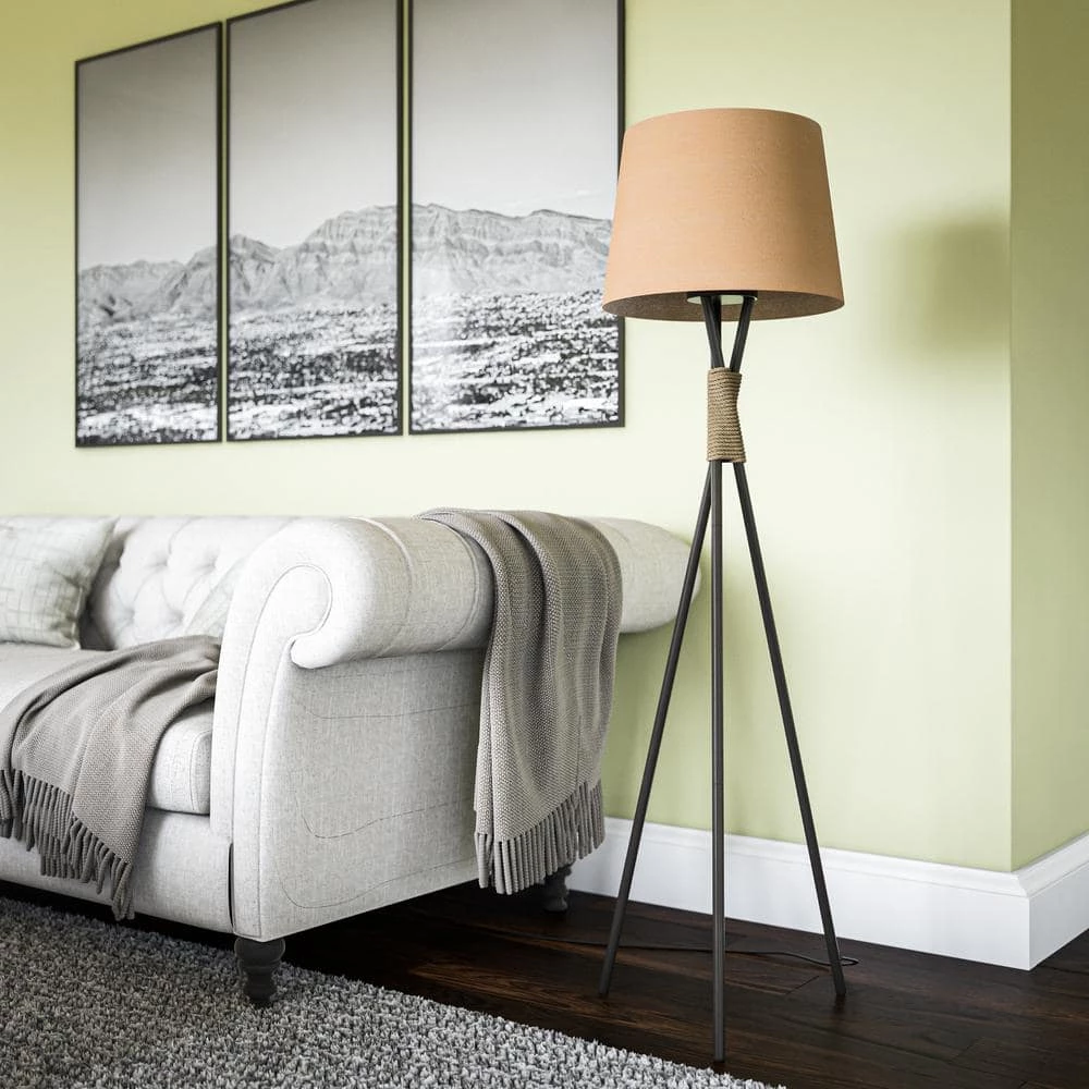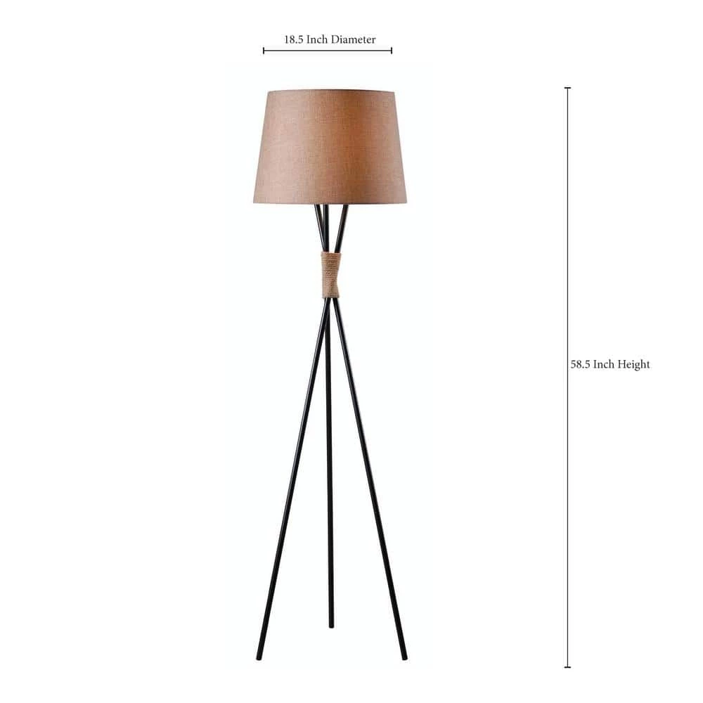 - Transitional tripod floor lamp with rich bronze finish and rope detailing