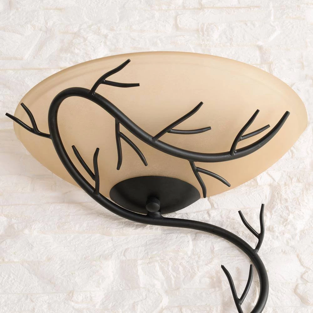 - RUSTIC ELEMENTS: branch details are the hallmark staple of this collection, winding around the amber iridescent glass shade; perfect for rustic, lodge or country cottage design