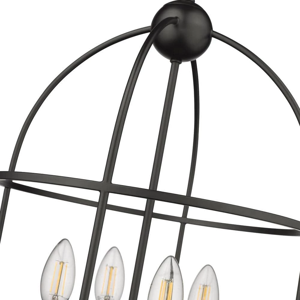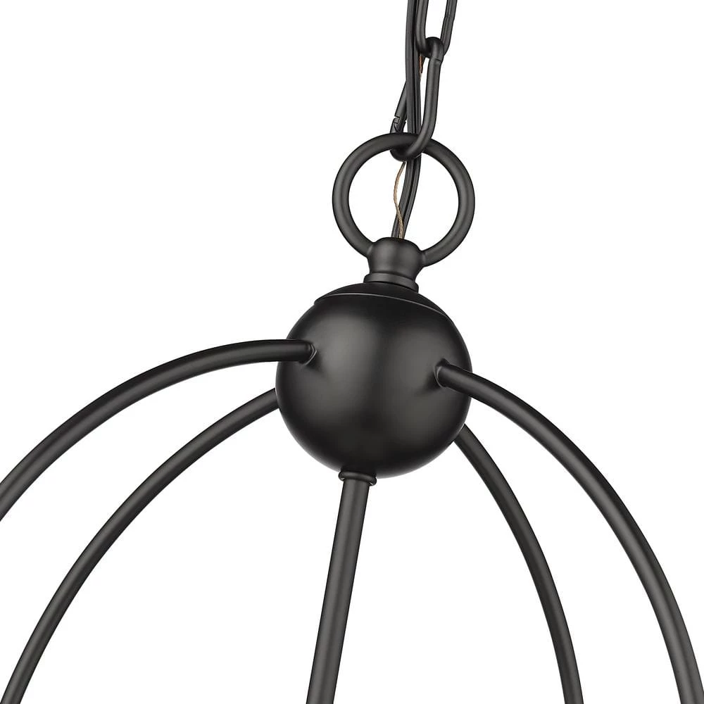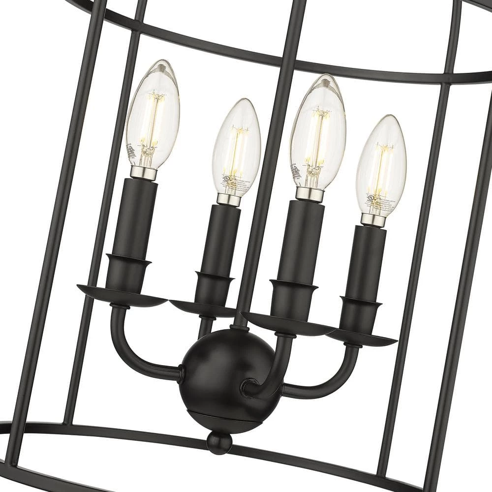 - Transitional 4-light pendant with black metal cage design and chain suspension cable